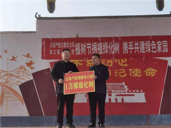 “這楸樹作為行道綠化,真不賴,現(xiàn)在栽上澆點(diǎn)水就能活……”在太康縣朱口鎮(zhèn)周寨村參加捐贈儀式的洼陳村村民代表張紅飛說。3月12日,植樹節(jié)當(dāng)日,太康縣朱口鎮(zhèn)與太平洋保險財產(chǎn)保險公司周口支公司在周寨村舉行了“植樹節(jié)捐植綠化樹,攜手共建綠色家園活動”,太平洋保險財產(chǎn)保險公司為朱口鎮(zhèn)捐贈綠化樹10000棵,助力朱口鎮(zhèn)建設(shè)綠色家園。太平洋保險公司周口支公司總監(jiān)豆威、總經(jīng)理趙磊和鎮(zhèn)長江海洋等出席了會議,全鎮(zhèn)52個村黨支部書記、100多名群眾代表參加了會議。