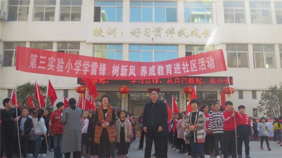 第三實(shí)驗(yàn)小學(xué)開(kāi)展“學(xué)雷鋒”進(jìn)社區(qū)活動(dòng),讓孩子親身體驗(yàn)如何處理垃圾、愛(ài)護(hù)花草的活動(dòng)。使雷鋒精神深入到每個(gè)班級(jí),激發(fā)學(xué)生養(yǎng)成好習(xí)慣意識(shí)。讓小學(xué)生在行為上倡導(dǎo)學(xué)雷鋒精神,使雷鋒精神得以代代相傳和弘揚(yáng)。