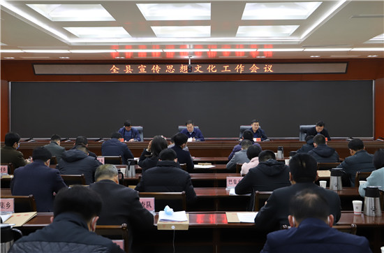 吳青鋒指出,2021年全縣宣傳思想文化工作的總體要求是,堅持以習(xí)近平新時代中國特色社會主義思想為指導(dǎo),全面貫徹十九大和十九屆二中、三中、四中、五中全會精神,深入貫徹習(xí)近平總書記關(guān)于宣傳思想工作的重要論述和視察河南重要講話精神,貫徹落實全國、全省、全市宣傳部長會議和縣委十二屆九次全會暨縣委經(jīng)濟(jì)工作會議精神,増強(qiáng)“四個意識”,堅定“四個自信”,做到“兩個維護(hù)”,聚焦“舉旗幟、聚民心、育新人、興文化、展形象”的使命任務(wù),圍繞開局“十四五”、開啟新征程,圍繞立足新發(fā)展階段、貫徹新發(fā)展理念、構(gòu)建新發(fā)展格局,緊扣慶祝建黨百年宣傳教育這條主線,以深化實施“八大工程”為總抓手,在推動習(xí)近平新時代中國特色社會主義思想深入人心上下功夫,在唱響愛黨愛國愛社會主義的時代主旋律上下功夫,在弘揚時代新風(fēng)、培育時代新人上下功夫,在凝心聚力推動全縣經(jīng)濟(jì)高質(zhì)量發(fā)展上下功夫。強(qiáng)化使命擔(dān)當(dāng)、銳意改革進(jìn)取,在新的歷史起點上譜寫守正創(chuàng)新、攻堅克難的出彩篇章。