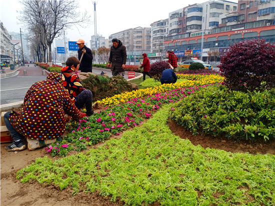 一場(chǎng)春雨過(guò)后,處處洋溢著勃勃生機(jī)。3月20日上午,記者在周口中心城區(qū)大慶路與交通大道交叉口處的紅綠燈旁看到,園藝工作人員正在忙碌著補(bǔ)種花木,黃色、綠色、紅色的花兒平鋪在一起組合成一道亮麗的風(fēng)景,扮靚了街頭,令人賞心悅目。③2