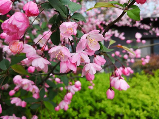 “等閑識得東風面,萬紫千紅總是春?!苯?,三川大地百花盛開,海棠花、桃花、紫荊花、連翹花……盛開的花朵色彩繽紛、美不勝收,濃濃的春意掛滿枝頭,令人流連忘返。