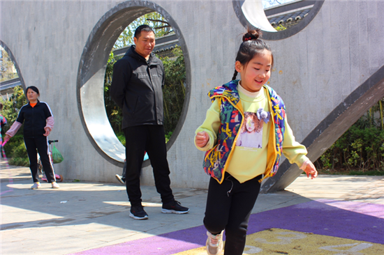 “之前小長假一般都是宅在家里看電視,去景區(qū)玩吧人太多,帶著孩子也不方便,現(xiàn)在家門前就是景,帶著孩子出來轉轉,心情非常好?!闭诖髴c路旁的小游園里散步的張女士說。