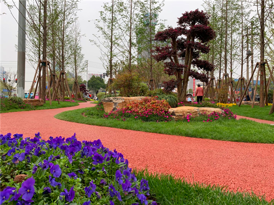 “風(fēng)景真是太美了,咱們坐這兒歇會(huì)吧?!?月7日一大早,園里就熱鬧起來,有蹣跚學(xué)步的孩童,有鍛煉身體的中年人,也有互相攙扶依偎的老人。自打游園開放后,市民李大媽成了這兒的??停俺蚩站蛶еO子來這兒玩。”綠化帶一夜間“變身”,讓過往市民贊嘆不已,大家的幸福感、獲得感進(jìn)一步增強(qiáng)。