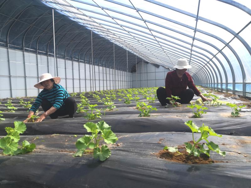 “當(dāng)下,正逢‘吊秧’香瓜生長(zhǎng)旺盛的時(shí)候,這幾天,我和馮大姐一直在大棚里忙活,每天有事兒干、有人陪說(shuō)話(huà),還可以?huà)甑?0元的工錢(qián),就在家門(mén)口,多好啊!”4月8日,在半截樓村新建的溫室大棚內(nèi),65歲的李?lèi)?ài)蓮一邊忙著為瓜秧打岔,一邊對(duì)記者說(shuō)。