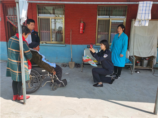 在大王樓敬老院康養(yǎng)的趙中原老人,已經(jīng)八旬有余,因常年臥床,行動(dòng)不便一直未能辦理二代居民身份證。三月下旬,其突發(fā)疾病,急需辦理醫(yī)保手續(xù)入院治療。但由于沒有身份證無法辦理相關(guān)手續(xù),這可急壞了敬老院負(fù)責(zé)人和工作人員。按正常程序,需要帶老人去派出所戶籍室采集人像及指紋信息,由于老人年邁又行動(dòng)不便,他們選擇向沈丘縣公安局西關(guān)派出所求助。接到電話后,西關(guān)派出所戶籍民警王欠積極與社區(qū)民警高坤朋一道前往敬老院。為了采集到合格信息,王欠與敬老院工作人員固定好老人坐姿,自己?jiǎn)蜗ハ鹿颍瑸橼w中原老人拍照。由于老人年邁且長(zhǎng)期臥床,坐姿和面部表情不好調(diào)整,王欠反復(fù)十余次單膝跪地,才采集到合格的人像信息。