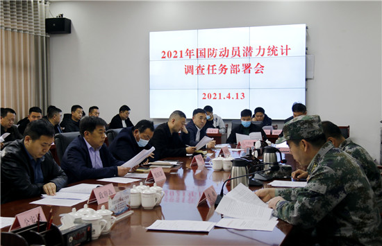 李峰主持會議并傳達了上級有關國防動員潛力統(tǒng)計調查相關文件精神,范亞光安排部署了2021國防動員潛力統(tǒng)計調查任務。