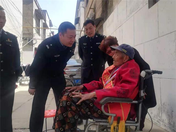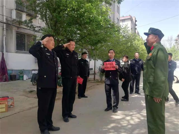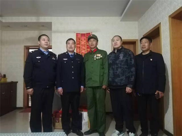 一大早,該所黨員民警身著戎裝,排著整齊的隊(duì)伍,分別前往荷花路派出所轄區(qū)的閆莊社區(qū)、荷花社區(qū)、前王營等社區(qū),探望慰問年逾花甲的抗戰(zhàn)老英雄,聆聽他們?cè)诳箵羟致缘膽?zhàn)斗歲月里浴血奮戰(zhàn)、不屈不撓的感人故事。在戰(zhàn)斗英雄尤洪亮家中,民警深切感受了那場保家衛(wèi)國反擊戰(zhàn)的慘烈,看到了新時(shí)代最可愛的人。