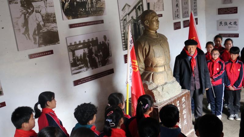 在全國上下掀起黨史學(xué)習(xí)教育熱潮之際,近日,來自吉鴻昌小學(xué)六(1)班的30名孩子,在學(xué)校少先隊(duì)輔導(dǎo)員的帶領(lǐng)下來到呂潭學(xué)校舊址,開展主題為“弘揚(yáng)鴻昌精神、傳承紅色基因”的主題隊(duì)會(huì)活動(dòng),參觀了吉鴻昌學(xué)校和吉鴻昌故居,循著英雄的足跡,親身感受吉鴻昌精神的內(nèi)涵,接受一場紅色的精神洗禮。期間,在吉鴻昌將軍塑像前,何國志老人生動(dòng)地講解了吉鴻昌將軍親手?jǐn)捞弥?、?chuàng)辦吉鴻昌學(xué)校、首次向中國人介紹電視等身前事跡,在場的孩子感動(dòng)得熱淚盈眶。 “聽了何爺爺?shù)闹v述,我被吉鴻昌將軍的事跡深深感動(dòng),長大后也要成為一名像他一樣的人!”張晨曦同學(xué)說。