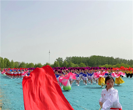 開幕式還舉行了彩扇舞、啦啦操、中國功夫、歌曲等文體表演。其中,彩扇舞《盛世花開》,由該校文化教育學(xué)院300名女生手持彩扇,跟隨著不同的音樂節(jié)奏變換著不同的色彩與隊(duì)形,依次拼出由鐮刀和錘頭組成的中國共產(chǎn)黨黨徽、象征體育精神的奧運(yùn)五環(huán)、“慶祝建黨100周年”、“周職20周年校慶”等圖形和字樣,表達(dá)著對(duì)黨的熱愛和對(duì)學(xué)校的祝福。表演者王真真說:“大家協(xié)同配合才能把節(jié)目表演好,這個(gè)節(jié)目我們排練了一個(gè)多月。雖然很辛苦,但是看到節(jié)目順利演出,感到很有成就感。”