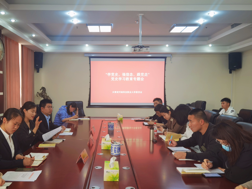為認(rèn)真貫徹習(xí)近平總書記在黨史學(xué)習(xí)教育動(dòng)員大會上的重要講話精神,引領(lǐng)廣大黨員深入學(xué)習(xí)黨的歷史,深化青年厚植愛黨、愛國、愛社會主義的情感,4月29日,共青團(tuán)河南科技職業(yè)大學(xué)委員會召開“學(xué)黨史、強(qiáng)信念、跟黨走"黨史學(xué)習(xí)教育專題會。