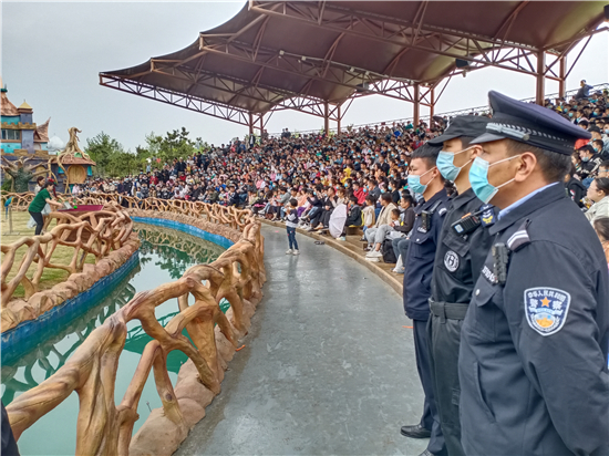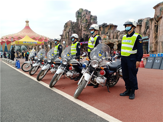 “接受游客求助、及時(shí)調(diào)解糾紛、處理園內(nèi)外各類突發(fā)事件……”在一天緊張而繁忙的工作中,民警顧不上休息,堅(jiān)守在景區(qū)一線,用自己的辛苦和汗水,換來(lái)了游客的游園安全,為游客創(chuàng)造了良好的治安環(huán)境。