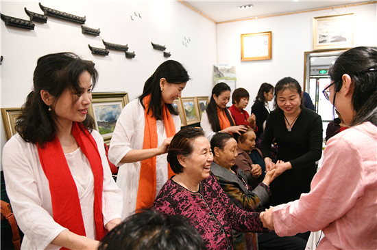 5月9日是母親節(jié)。為迎接這個充滿母愛的日子,5月5日上午,蕓雅讀書社在華威學堂舉辦了“遇見最美的自己”孝心表達活動,平時忙碌的子女利用假期的閑暇時光,相聚這里為母親按摩、理療經(jīng)絡、叩謝相擁、送鮮花等,以表達對母親養(yǎng)育之情的感恩,祝福天下母親健康、長壽、開心。來自市區(qū)的15個家庭參加這次母親節(jié)孝心表達活動。②9