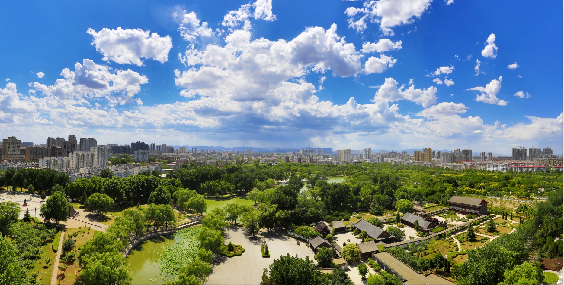圖2:近年來,邢臺市主城區(qū)空氣質(zhì)量持續(xù)好轉(zhuǎn)。圖為邢臺市達活泉公園鳥瞰。(邢臺日報社全媒體記者 黃濤 攝)