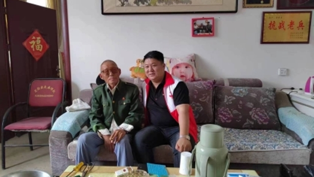 6月18日,愛(ài)心人士、周口市政協(xié)委員單東亮慰問(wèn)淮陽(yáng)區(qū)齊老鄉(xiāng)參戰(zhàn)老英雄齊修才。