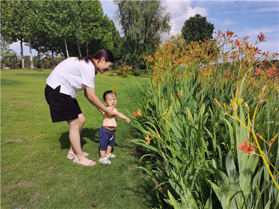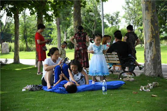7月7日,不少市民帶著孩子在周口植物園內休閑玩耍。進入了炎炎夏日,周口植物園里清新的空氣、大片綠蔭、盛開的鮮花十分吸睛,市民在林中穿行休閑漫步、孩子們快樂地蕩秋千……這里成了市民游玩消暑的好去處。③2