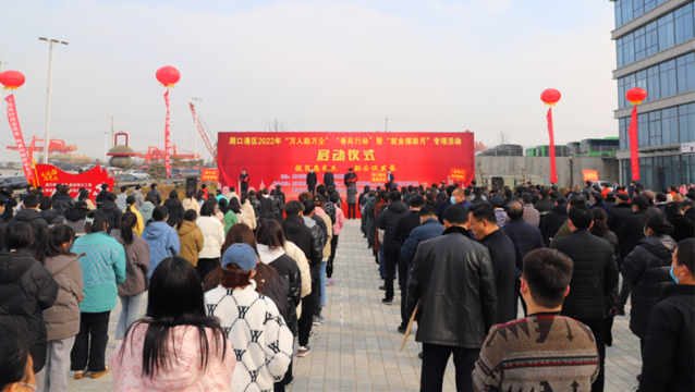 2月22日,周口港區(qū)舉辦2022年“萬人助萬企”“春風(fēng)行動”暨“就業(yè)援助月”啟動儀式,通過舉辦一系列活動,為企業(yè)和求職者牽線搭橋。港區(qū)黨委書記孫鵬宣布啟動儀式開幕,管委會主任胡軍華在儀式上致辭,港區(qū)領(lǐng)導(dǎo)杜廣賢、劉學(xué)慶、李素芹參加活動。