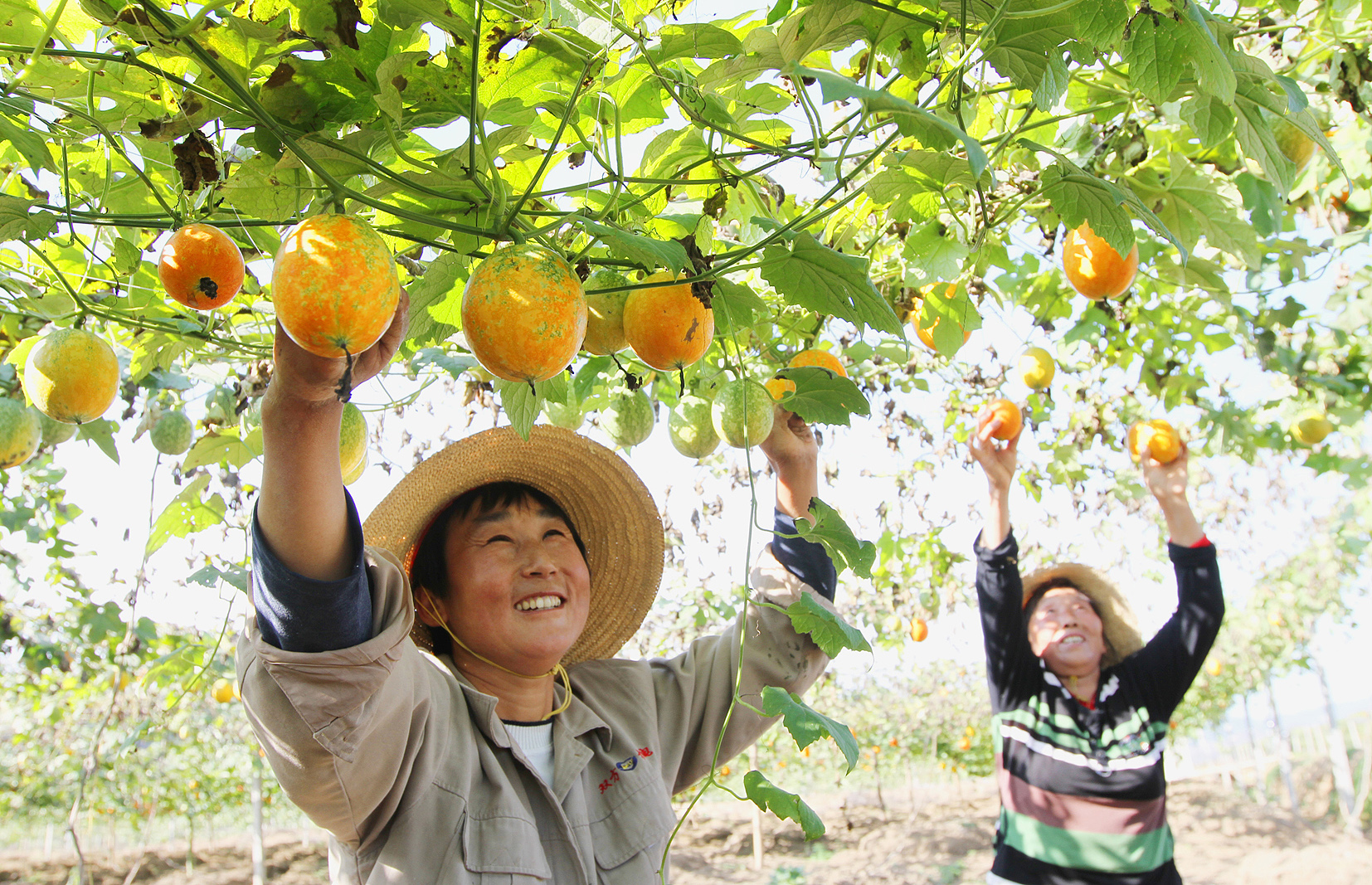圖1:房縣軍店鎮(zhèn)中村村農(nóng)民在中藥材產(chǎn)業(yè)園采收吊瓜。 圖片由十堰日?qǐng)?bào)社提供