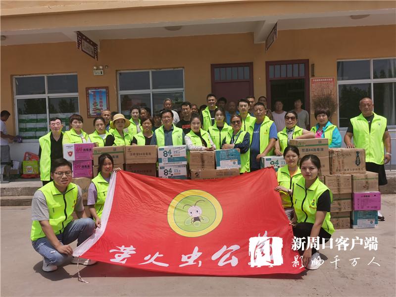 時(shí)刻關(guān)注受災(zāi)群眾動(dòng)態(tài)的周口螢火蟲(chóng)公益組織得知這一情況后,于7月30日上午再次奔赴西華縣紅花鎮(zhèn),為即將返家的王橋行政村村民送去呋喃西林粉、蚊蟲(chóng)叮咬液、消毒凝膠、口罩、84消毒液等價(jià)值兩萬(wàn)余元的消殺物資?!班l(xiāng)親們今天回家,這些東西正好用得著。謝謝你們!”王橋行政村村干部和富平代表村民向周口螢火蟲(chóng)公益表示感謝。
