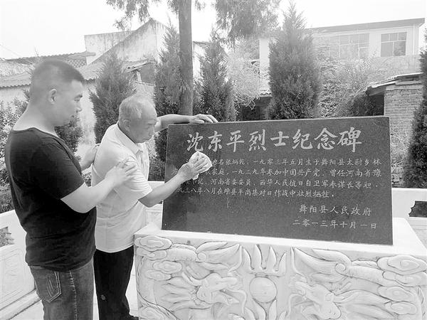 當(dāng)?shù)卣疄榫拺延⒘?,在沈東平的家鄉(xiāng)舞陽(yáng)縣太尉鎮(zhèn)林莊村,為沈東平建起墓地。
