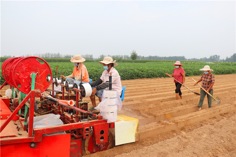 菜苗補(bǔ)栽全面展開。在韭園鎮(zhèn)蔬菜種植大戶李興華的胡蘿卜基地,2臺(tái)進(jìn)口大型播種機(jī)、起壟機(jī)來來回回,拉滴灌管的農(nóng)民工滿頭大汗搶播搶種。截至目前,全縣設(shè)施蔬菜改種補(bǔ)種2600余畝,修復(fù)大棚982座,6個(gè)重點(diǎn)育苗基地已恢復(fù)育苗能力,近期已育苗800萬(wàn)株。