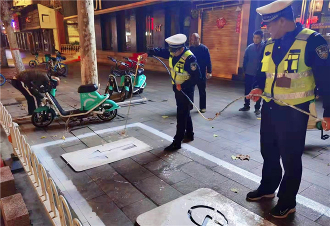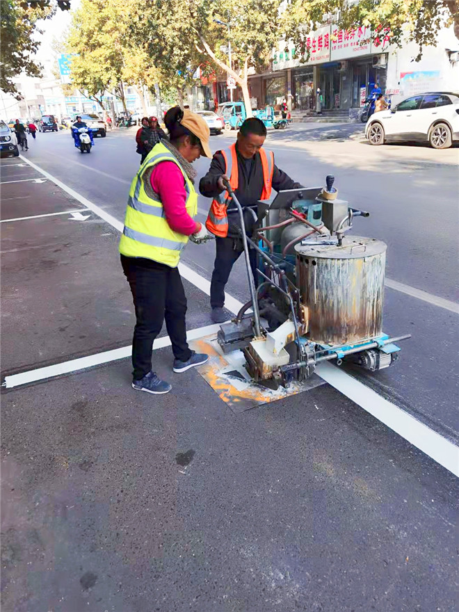10月26日晚6時許,在周口大道與文體路交叉口附近,幾名工作人員正在使用熱熔畫線機,對路面上不太清晰的斑馬線進行重新施劃?!奥访鏄司€是公路的‘無言哨兵’,覆畫后的道路交通標線醒目美觀,一方面消除了安全隱患,保障了交通安全和暢通,另一方面也極大地美化、扮靚了沿線路域環(huán)境,成為城市文明的一道風景線。”該負責人說。