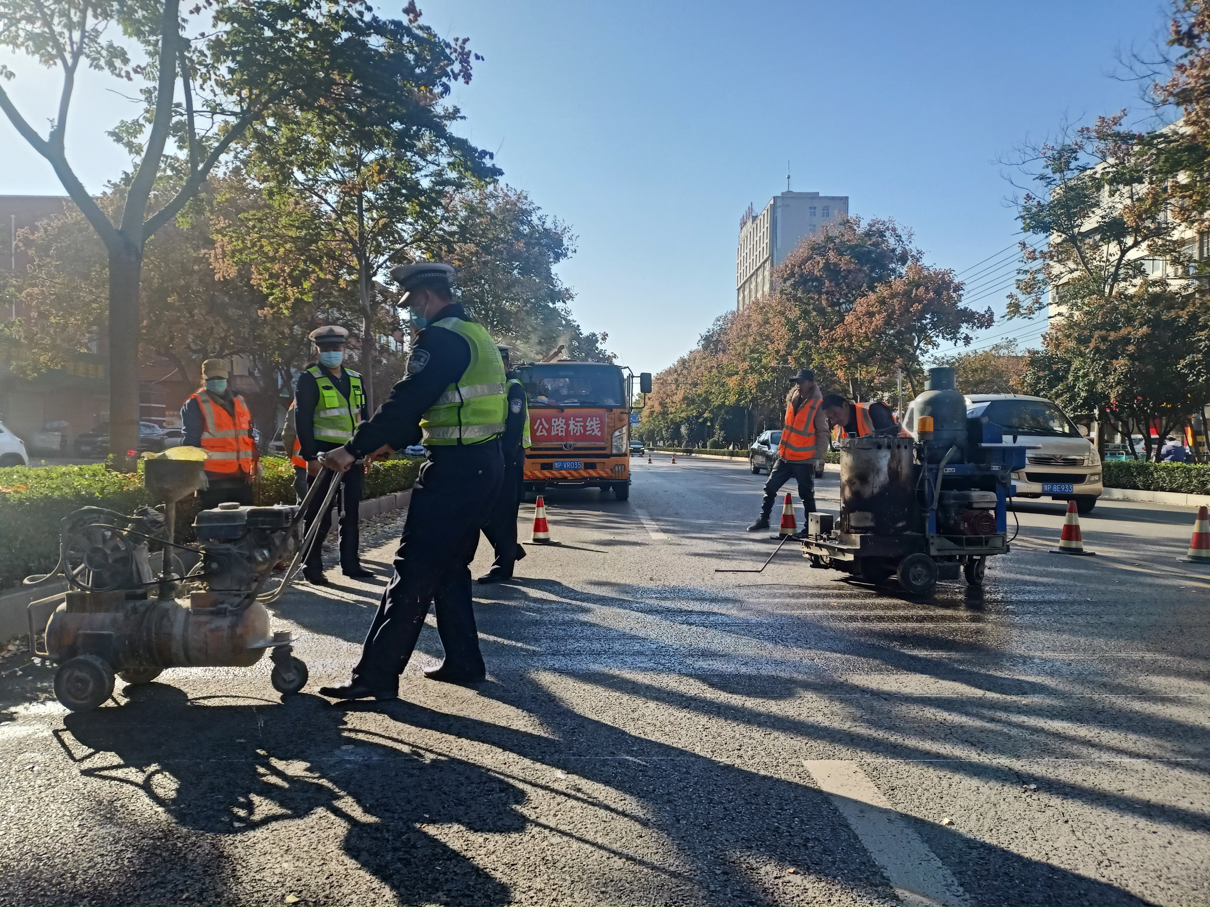 當日下午,記者在黃河路看到,施工人員正在熟練地操作標線機,認真細致地施劃減速震蕩標線。市公安局交通管理支隊設(shè)施維護中心(以下簡稱設(shè)施維護中心)工作人員黃勇說:“在創(chuàng)文期間,設(shè)施維護中心加大對道路護欄的清洗力度,完善交通信號燈的維護,清除學校門口不合理的停車位,修剪遮擋交通設(shè)施的樹枝,排除路口的交通隱患?!?/p>