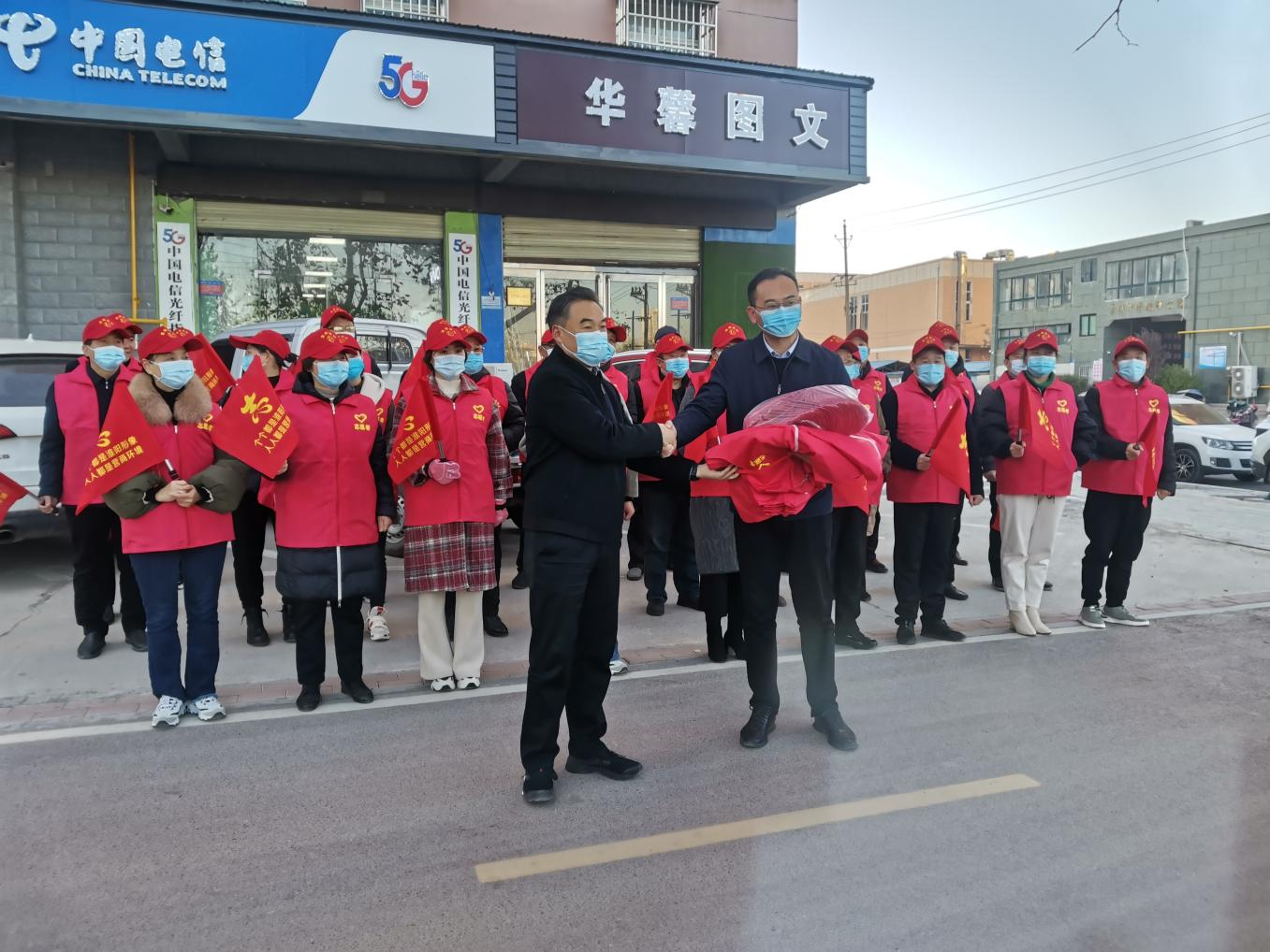 11月23日上午,淮陽區(qū)弦歌路與明信路(新民路)文明交通值勤路口集合了一群頭戴小紅帽,身著紅色馬甲,手拿小紅旗的志愿者,他們是淮陽區(qū)教體局的職工。為了實(shí)現(xiàn)交通文明勸導(dǎo)和優(yōu)化營商環(huán)境標(biāo)“雙勝利”,進(jìn)一步營造“人人都是營商環(huán)境、個(gè)個(gè)都是淮陽形象”的濃厚氛圍,淮陽區(qū)營商辦組織開展了“別樣‘志愿紅’,助力優(yōu)化營商環(huán)境活動(dòng)”。