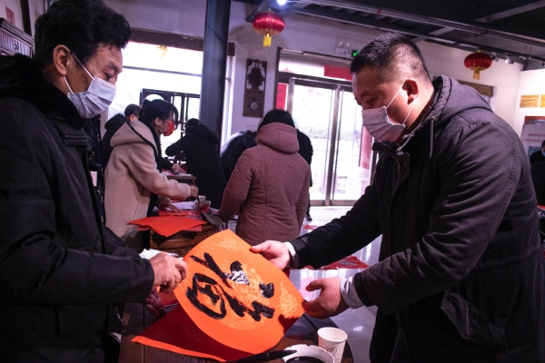 1月28日上午,市民間文藝家協(xié)會、市燈謎學專委會聯(lián)合華威民俗文化博物苑邀請霍云亭、寇成義、李國彬、靳玉峰、陳濤、游富華、何南、軒敬賢、李雯云等書法家,為市民寫春聯(lián)送祝福。窗外雪花飛舞,屋內(nèi)紅紙鋪展,老中青書法家揮毫潑墨,表達新年祝福。