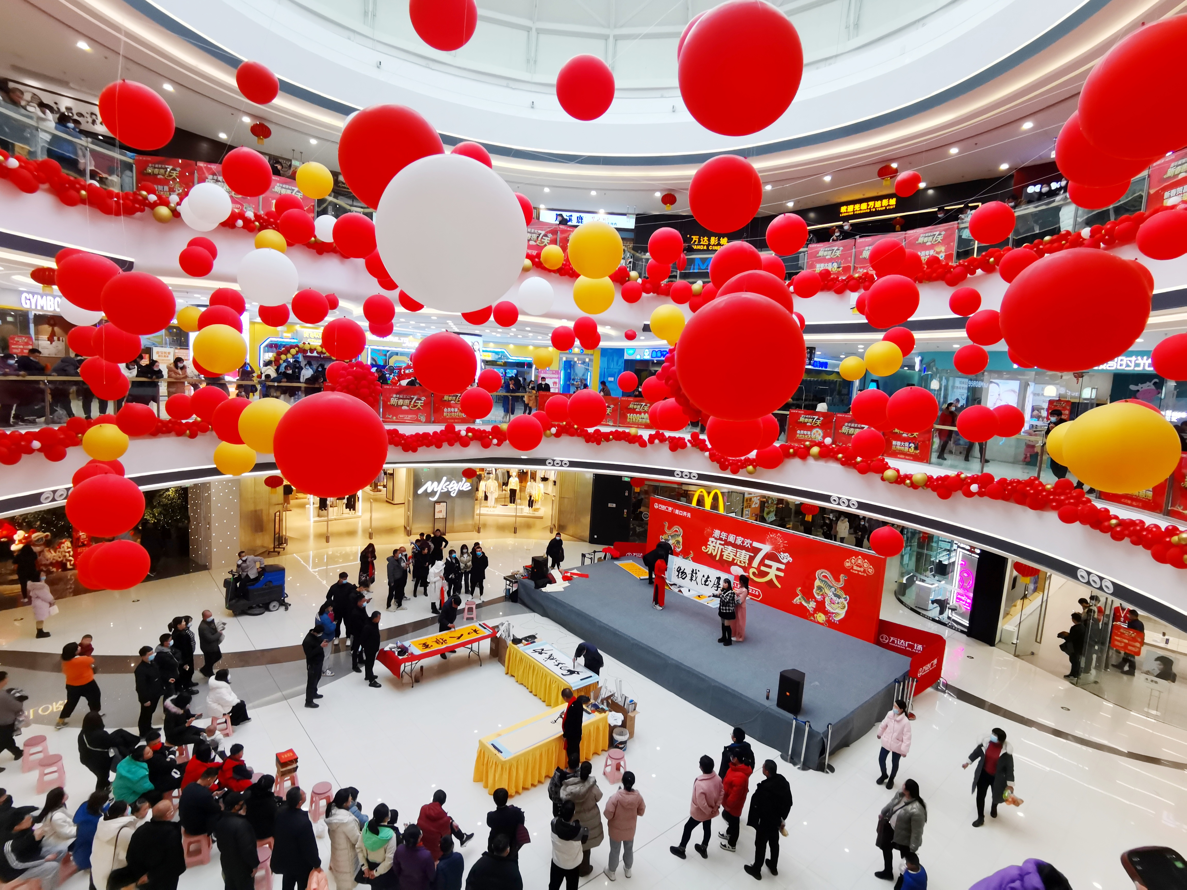 春節(jié)期間,中心城區(qū)各商場(chǎng)為烘托節(jié)日氣氛,用各種帶有濃郁喜慶色彩的燈籠、氣球等飾物進(jìn)行裝飾,烘托濃烈年味,處處洋溢著一片歡樂(lè)幸福、喜慶祥和的氛圍。