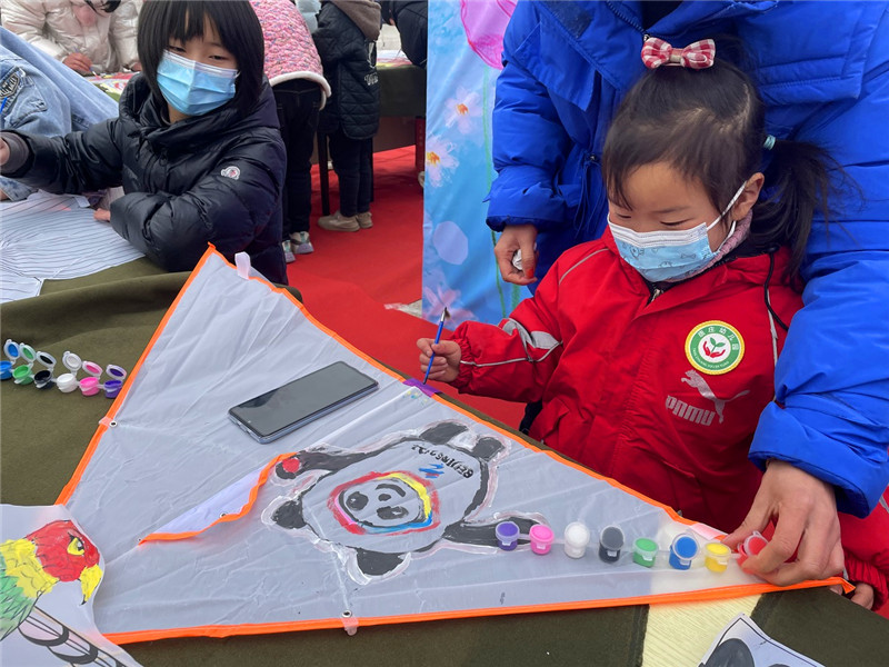 “媽媽你看,我畫的冰墩墩可愛嗎?”2月15日上午,“放飛春天——兒童DIY手繪風(fēng)箏”活動(dòng)在周口市文化藝術(shù)中心西廣場如期舉辦。一名身穿紅色棉服的小女孩在媽媽的幫助下,創(chuàng)作完成了一只畫有“冰墩墩”形象的手繪風(fēng)箏。