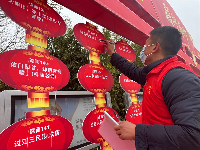 “阿姨您好!148號燈謎的謎底是‘香皂’?!?月15日,在周口市文化藝術(shù)中心西廣場,正在舉行“潁河春燈——元宵燈謎猜猜猜”活動(dòng)?!拔易钕矚g猜燈謎了,猜對以后我還能拿到一個(gè)玩具小飛機(jī),真開心!”說話的這個(gè)小男孩姓汪,今年8歲,在今天這場猜燈謎活動(dòng)中,他是第一位給出正確答案的參與者。