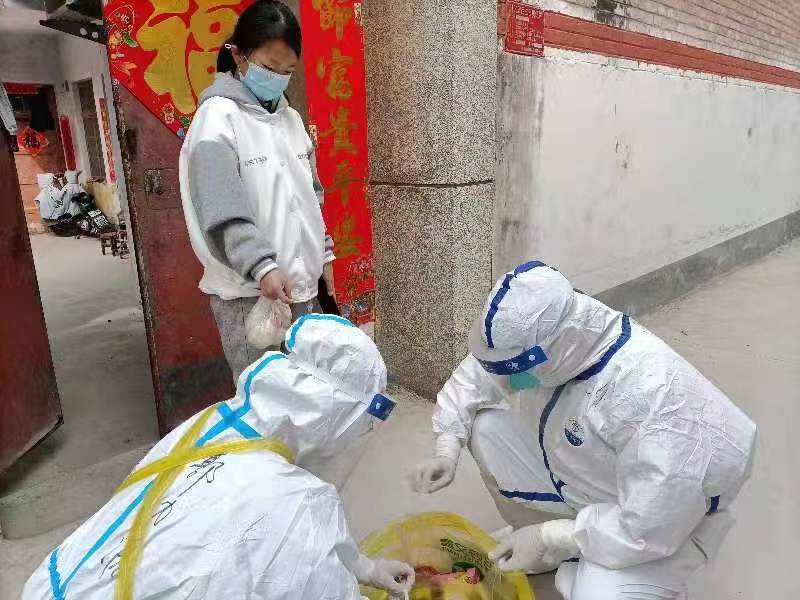 到達太康后,王群禮被分到了城關(guān)回族鎮(zhèn)封控區(qū)進行入戶核酸采集,當(dāng)時的他也很緊張,認真地穿防護服,熟記采集核酸的每一個動作要領(lǐng),然后投身抗疫最前線。在入戶采樣的時候,王群禮發(fā)現(xiàn)有一個小女孩獨自在家,她每次聽到敲門聲都是先開一點縫,悄悄觀察外面,當(dāng)看到是防疫人員時,才慢慢打開門?!拔铱梢钥闯鏊目謶趾蜔o助,不知道她晚上怕不怕,會不會做飯,問她怎么吃飯,她也不說話,我心里很不是滋味?!睆哪翘扉_始,王群禮每次入戶采核酸的時候,就幫她帶點吃的,王群禮會把他的早餐留給她,還把自己的水果、零食也都送給她。