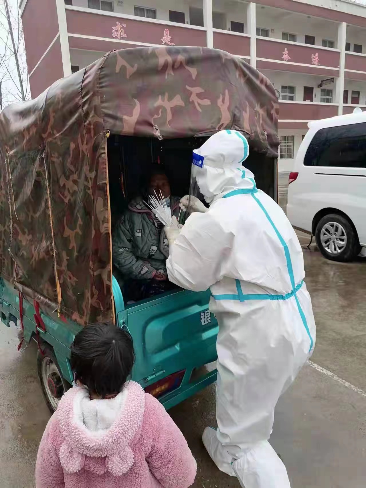 3月22日接到援太任務(wù)后,張俊華迅速和全縣200名醫(yī)護人員趕赴太康,并于次日凌晨3時醫(yī)療隊到達太康?!拔覀兠刻炝璩?點起床,5點到達采集點開始工作,不敢多吃飯,不敢多喝水,擔(dān)心穿脫防護服延誤采樣時間。中午餓了,簡單吃點東西后繼續(xù)工作……”張俊華回憶道。幾天后,為避免交叉感染,按照市衛(wèi)健委要求,他們?nèi)霊舨杉怂針颖?。張俊華和其他隊員背著用塑料袋制成的背包,裝上棉簽和取樣管,一家一家地跑。一天下來,他們的腳上磨出了泡,臉上、手上都是勒痕。面對各種困難,他們迅速調(diào)整方案,一邊和社區(qū)人員組織群眾維持秩序,一邊進行核酸采集工作。工作臨近結(jié)束時,太康縣板橋鎮(zhèn)和常營鎮(zhèn)政府為他們頒發(fā)了榮譽證書。