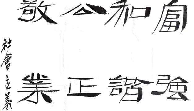 程度 中國(guó)書法家協(xié)會(huì)理事、隸書委員會(huì)委員,北京書法家協(xié)會(huì)理事,北京市朝陽(yáng)區(qū)書法家協(xié)會(huì)秘書長(zhǎng)(社會(huì)主義核心價(jià)值觀)