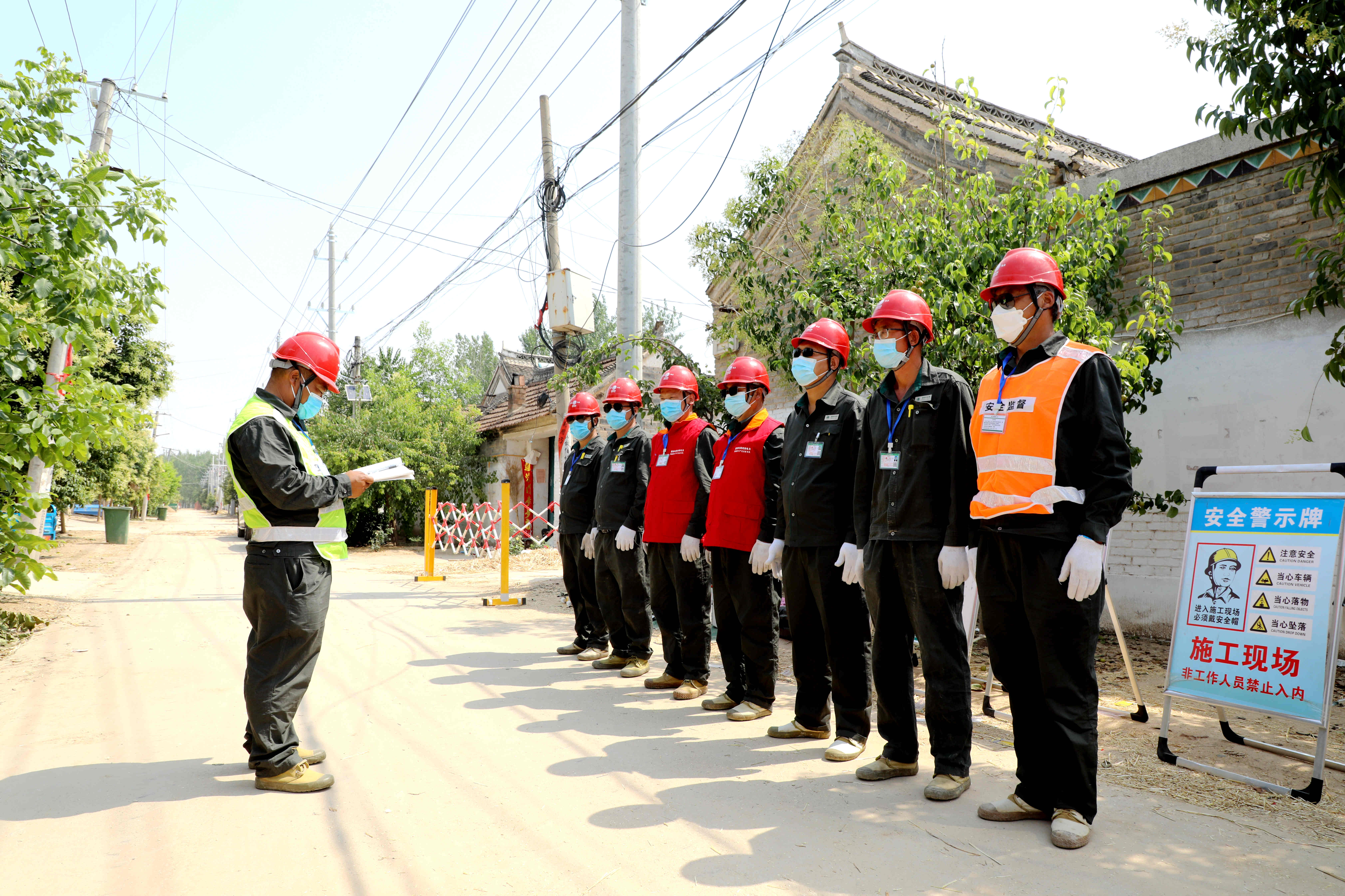 6月9日,在西華縣皮營鄉(xiāng)齊莊行政村潭張1號臺區(qū)施工現(xiàn)場,國網(wǎng)西華縣供電公司組織焦裕祿共產(chǎn)黨員服務隊帶領施工人員分工協(xié)作、高效配合,安裝電表箱、更換下戶線、增容變壓器、新建低壓線路。