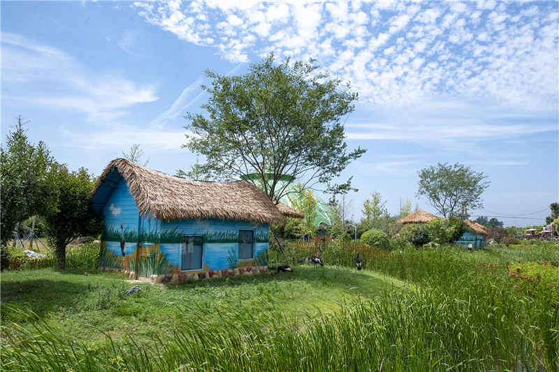 藍(lán)天白云下,茂密的森林里,一個(gè)個(gè)動(dòng)物造型的城堡里,是“魔幻”般的童話世界。