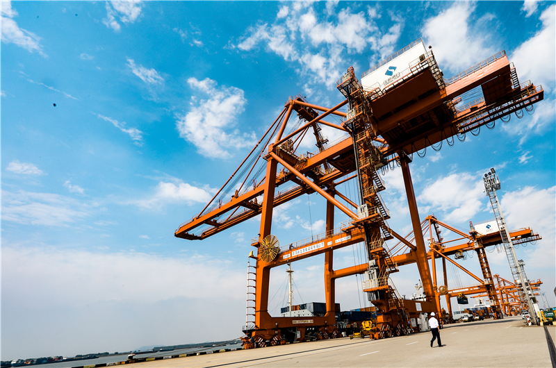 南京港龍?zhí)陡蹍^(qū)的碼頭起重機