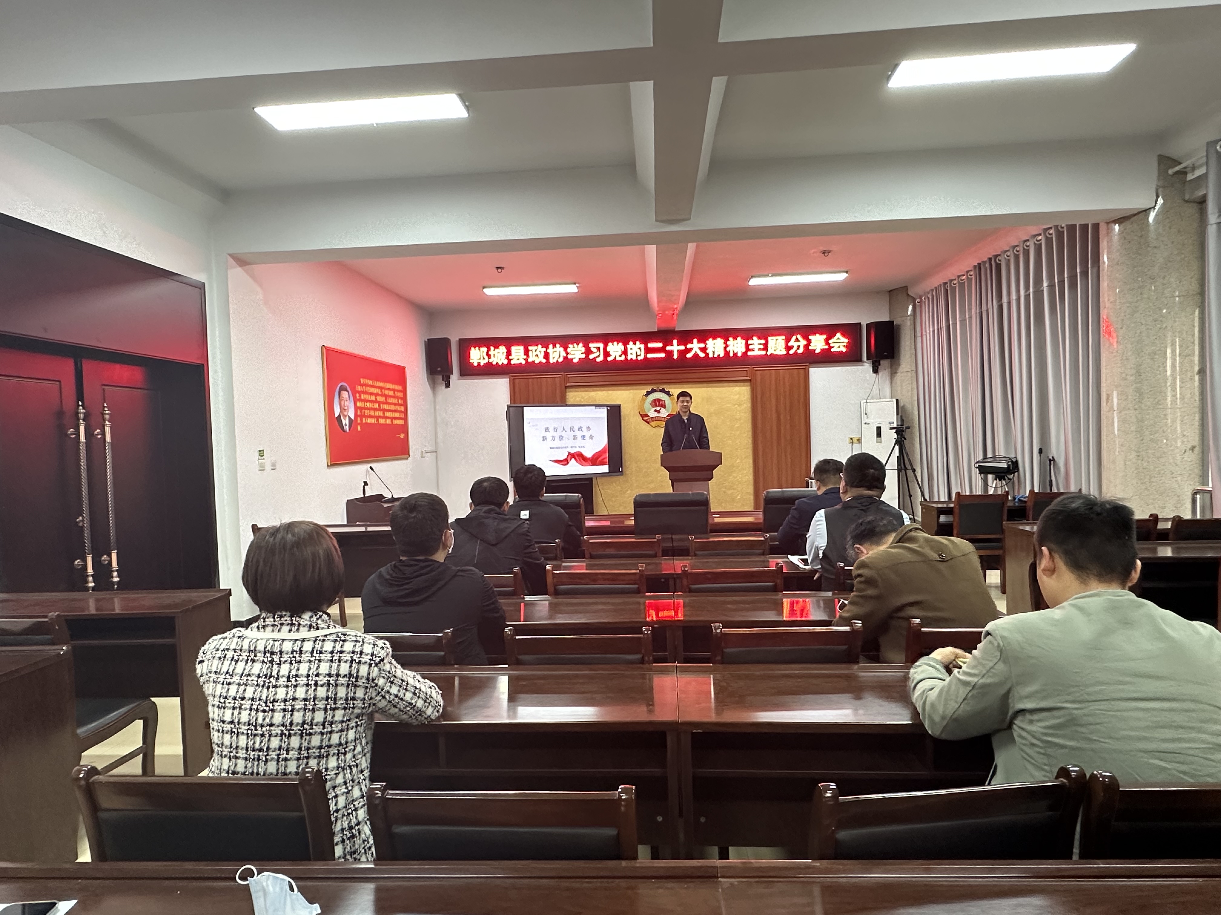為深入學(xué)習(xí)宣傳貫徹黨的二十大精神,落實中央和省委、市委、縣委、縣政協(xié)工作會議精神,持續(xù)深化“委員讀書學(xué)習(xí)”活動,提升政協(xié)履職實效,激發(fā)干事活力,11月17日,鄲城縣政協(xié)舉辦“學(xué)精神踐行動 閱讀向未來”學(xué)習(xí)黨的二十大精神主題分享會??h政協(xié)秘書長朱東風(fēng)及全體機(jī)關(guān)人員參加活動。