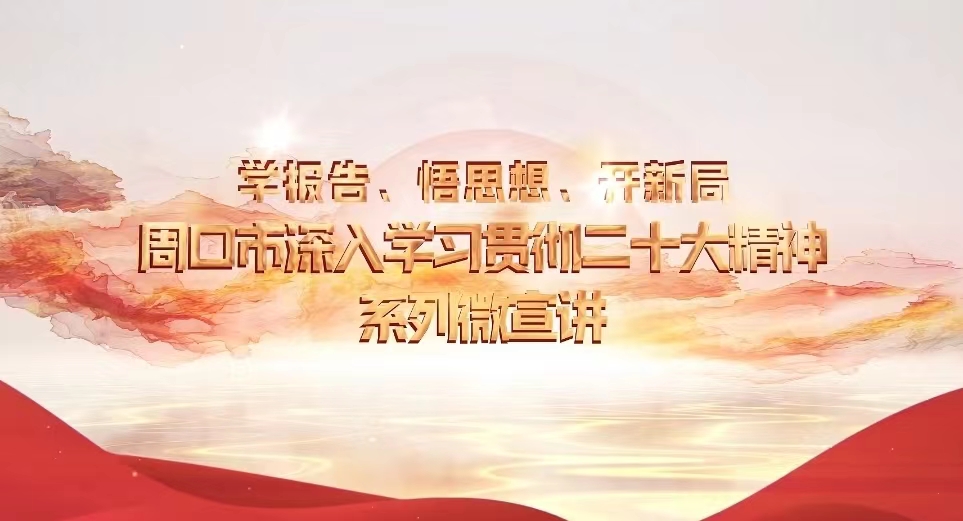為深入學(xué)習(xí)貫徹黨的二十大精神,中共周口市委宣傳部、中共周口市委黨校和周口報業(yè)傳媒集團(tuán)共同制作“學(xué)報告 悟思想 開新局”系列宣講微視頻,將分專題陸續(xù)推出。
