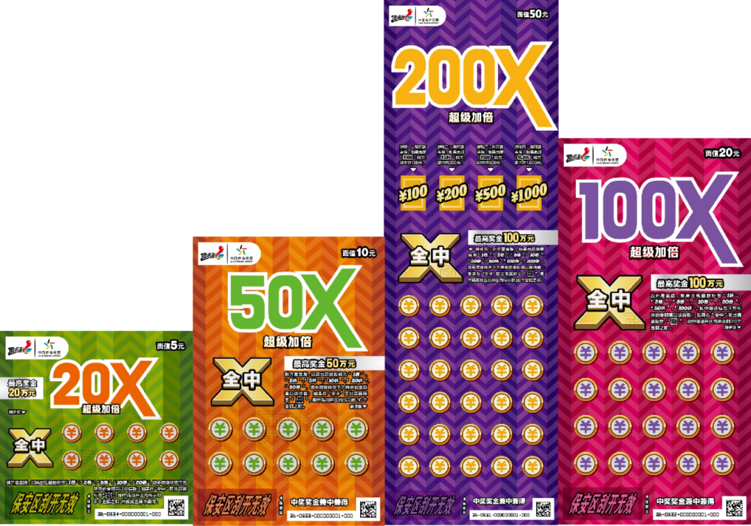 “超級加倍Ⅱ”系列主題即開票(面值:50元、20元、10元、5元)。