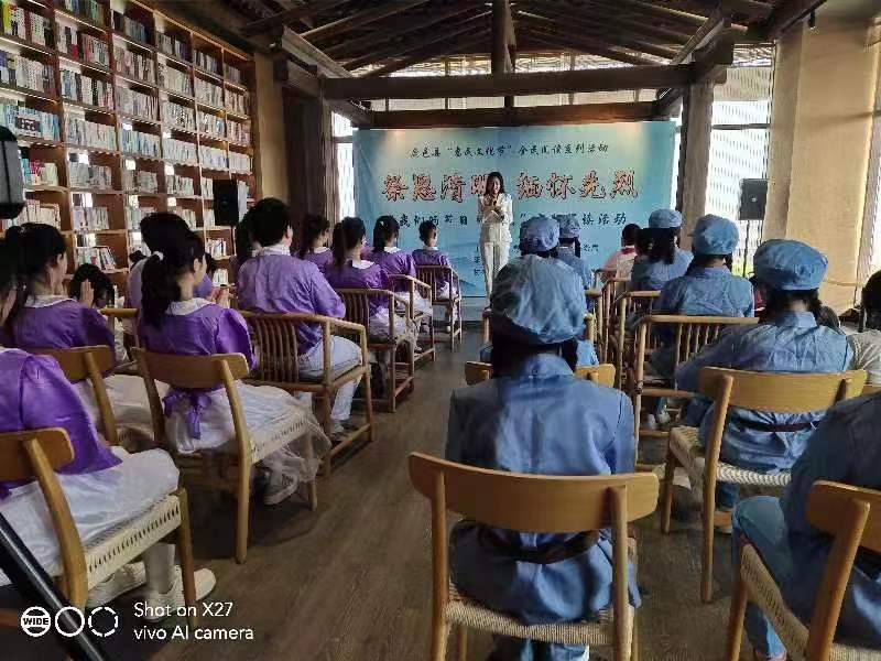 活動由該縣文化廣電和旅游局主辦,縣圖書館承辦,旨在緬懷追憶革命先烈英雄事跡,持續(xù)深化“惠民文化節(jié)”全民閱讀系列活動,向青少年學(xué)生普及清明節(jié)文化知識。當(dāng)日,在該縣圖書館三樓,縣圖書館工作人員講述全縣部分革命先烈英雄事跡和悲壯故事;縣文化廣電和旅游局工作人員講解清明節(jié)由來、清明節(jié)習(xí)俗、清明節(jié)為什么要文明祭祀、清明節(jié)為什么要祭祀和掃墓等知識;身著“小八路軍裝”的青少年學(xué)生依次登臺,聲情并茂地朗誦《中國人清明節(jié)》《清明的雨》《我愛你中國》《鄉(xiāng)愁》《清明詩詞》《不朽》《青松禮贊》《穿越時空的對話》等經(jīng)典詩詞,表達(dá)對革命先烈的無限崇敬和緬懷。