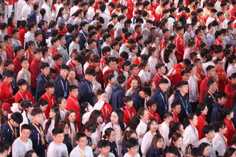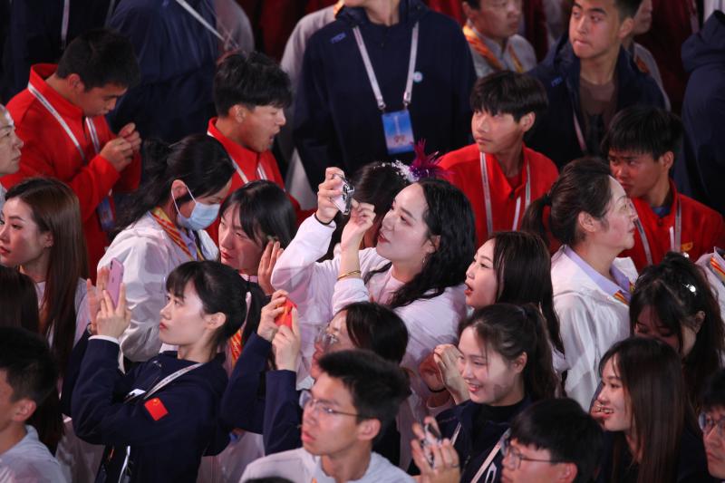 閉幕式上,來(lái)自全省各地的運(yùn)動(dòng)員用手機(jī)記錄下精彩瞬間。記者 劉俊濤 攝