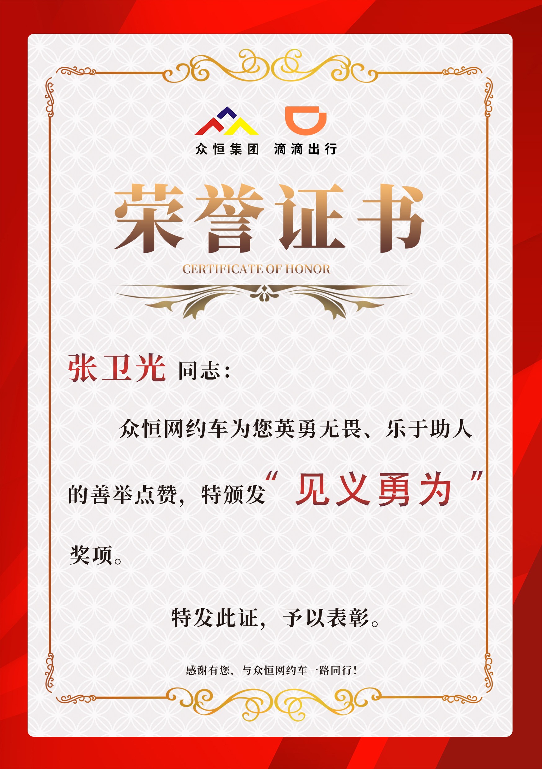 “當(dāng)時(shí)只想著救人,其他都沒顧上?!泵鎸颊呒覍俚倪B聲道謝,張衛(wèi)光顯得格外低調(diào)。他表示,作為滴滴隊(duì)長,公司定期組織的急救培訓(xùn)和應(yīng)急演練讓他在關(guān)鍵時(shí)刻能冷靜應(yīng)對,“每個(gè)司機(jī)都可能遇到類似情況,我只是做了該做的事”。周口市人大代表,市交通運(yùn)輸行業(yè)黨委委員謝華在得知此事后,對張衛(wèi)光的善舉給予高度評價(jià)并頒發(fā)榮譽(yù)證書:“張師傅用實(shí)際行動(dòng)詮釋了‘服務(wù)至上’的理念,他的專業(yè)與熱心是網(wǎng)約車司機(jī)群體的縮影?!?/p>