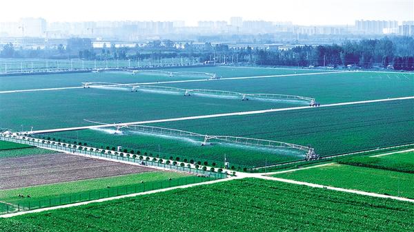 7月18日,在扶溝縣城郊鄉(xiāng)高標(biāo)準(zhǔn)農(nóng)田里,大型移動(dòng)灌溉設(shè)備正在為農(nóng)作物澆水。日前,扶溝縣掀起了以抗旱澆水、除草施肥、病蟲害防治為主的農(nóng)作物夏管工作,為秋糧豐收奠定堅(jiān)實(shí)基礎(chǔ)。黃金峰 攝