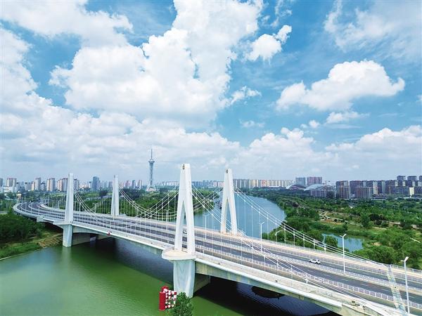 7月25日,藍天白云映襯下,周口市七一路跨沙潁河大橋以“揚帆出海”的獨特造型,生動展現(xiàn)了這座中原港城的雄心。作為河南“豫貨出?!钡臉蝾^堡,周口正肩負起港口型國家物流樞紐承載城市的重任,推動“經(jīng)濟通道”邁向“通道經(jīng)濟”,實現(xiàn)高質量發(fā)展。
