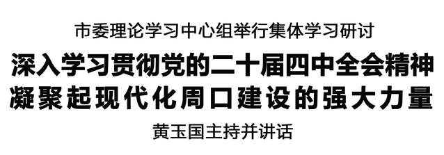 本報訊 (記者 王艷) 11月8日,市委理論學習中心組舉行集體學習研討,深入學習貫徹黨的二十屆四中全會精神,示范帶動全市各級黨組織和廣大黨員干部興起學習貫徹熱潮,凝聚起現(xiàn)代化周口建設的強大力量。市委書記黃玉國主持并講話。