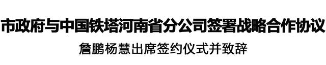 本報(bào)訊 (記者 李鳳霞) 11月18日,周口市人民政府與中國(guó)鐵塔河南省分公司簽署戰(zhàn)略合作協(xié)議。市長(zhǎng)詹鵬,中國(guó)鐵塔河南省分公司黨委書(shū)記、總經(jīng)理?xiàng)罨鄢鱿灱s儀式并致辭。中國(guó)鐵塔河南省分公司副總經(jīng)理代沛、副市長(zhǎng)梁建松代表雙方簽署戰(zhàn)略合作協(xié)議。市政府秘書(shū)長(zhǎng)王文峰出席。