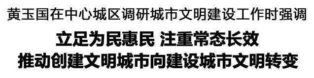 調研中,黃玉國強調,從創(chuàng)建文明城市到建設城市文明,是工作理念的轉變,也是工作實踐的深化拓展。要更加注重常態(tài)長效,堅持融入日常、抓在經常,強化機制保障,鞏固拓展文明城市創(chuàng)建成果。要更加注重精細治理,強化問題導向,下足“繡花功夫”,提升網格化管理服務質效,讓群眾生活更方便、更舒心。要更加注重成風化人,大力培育和踐行社會主義核心價值觀,加強教育引導和典型選樹,堅持法治和德治相結合,弘揚崇德向善的文明風尚,不斷提升市民文明素養(yǎng),讓文明內化于心、外化于行。要更加注重全民參與,堅持問計于民、問需于民、問效于民,搭建參與平臺,凝聚多元合力,營造共建共治共享的良好氛圍。