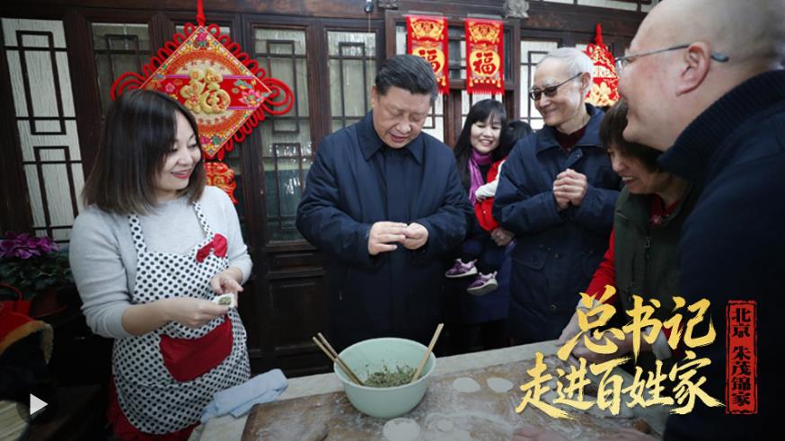 2019年春節(jié)前夕,習(xí)近平總書記走進(jìn)北京市東城區(qū)草廠四條胡同。在居民朱茂錦家里,總書記與他們一家邊包水餃邊聊家常??倳浶χf:“我家里也愛包茴香餡的。多年來因工作關(guān)系我沒包過餃子了,你們看,越包越好。我們的生活也是這樣,越過越好!”
