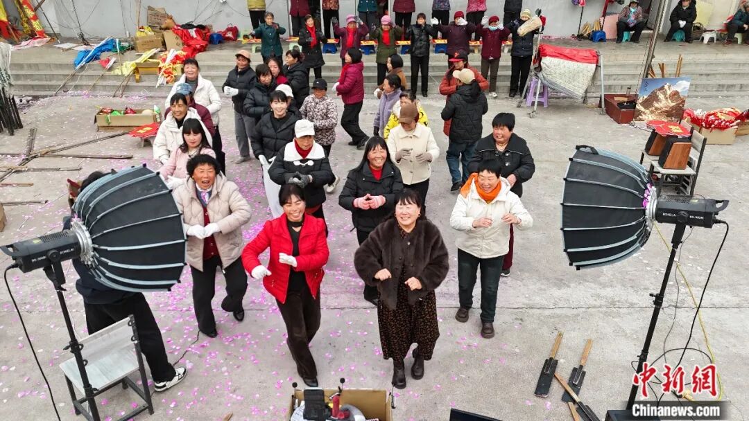 林州留守女性們在鏡頭前起舞。 趙夢陽 攝